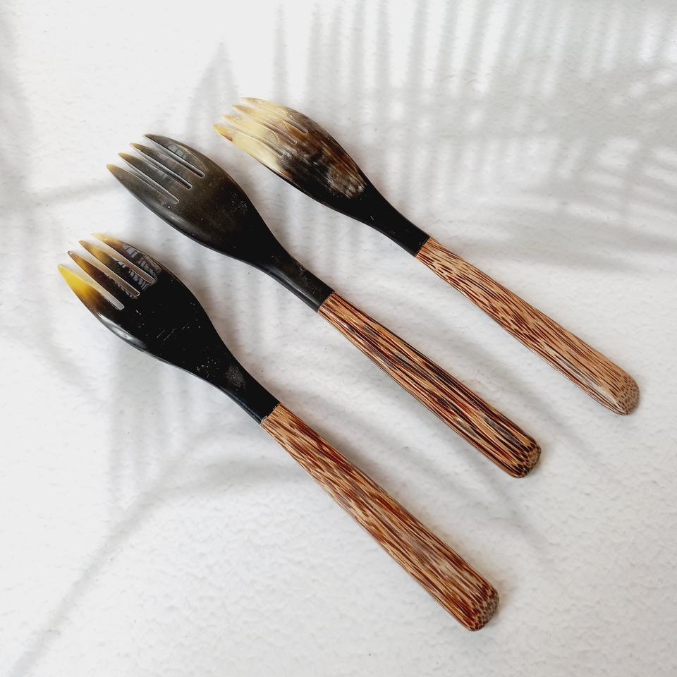 Haute qualité pas cher prix vache buffle corne de boeuf manche en bois fourchette couverts ensemble artisanat fabriqué au Vietnam naturel