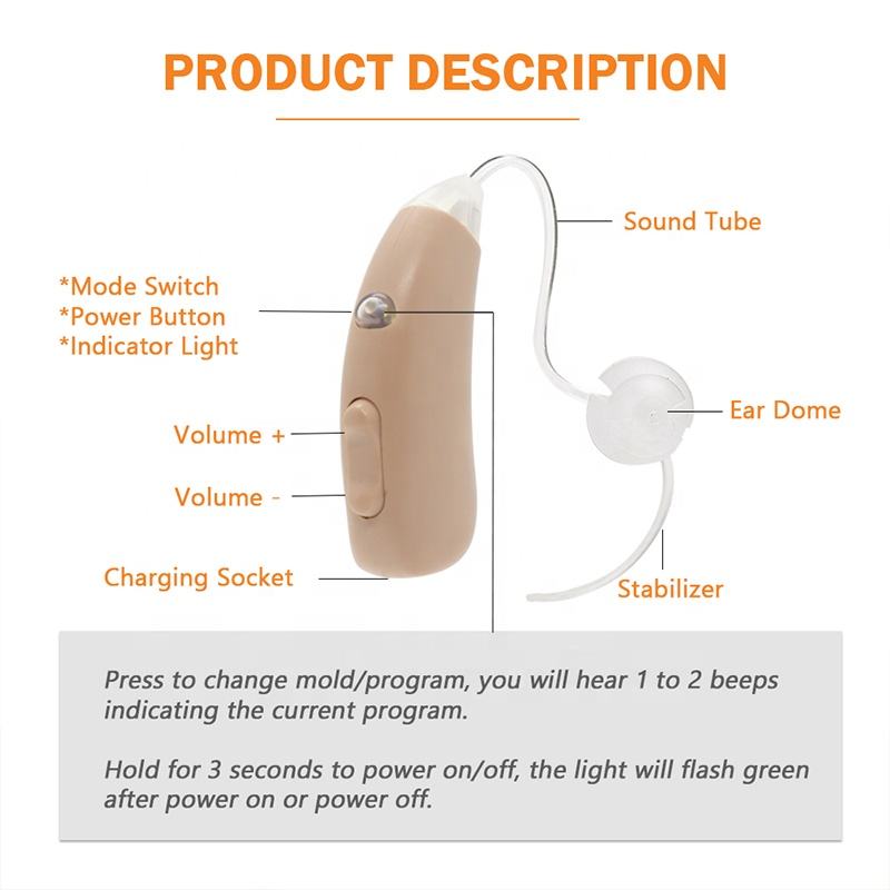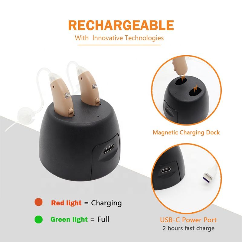 Amplificateur sonore Rechargeable de haute qualité et bon marché pour les sourds, crochet d'oreille bon comme aides auditives signa