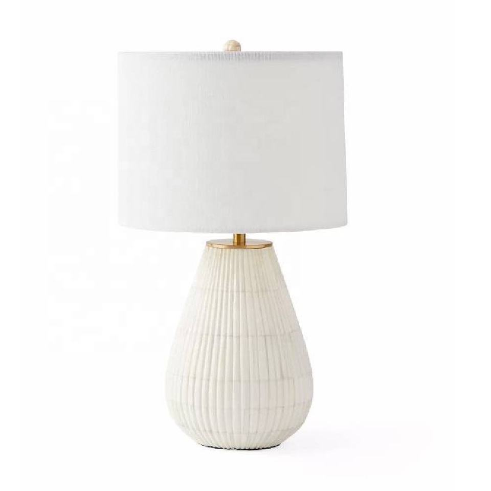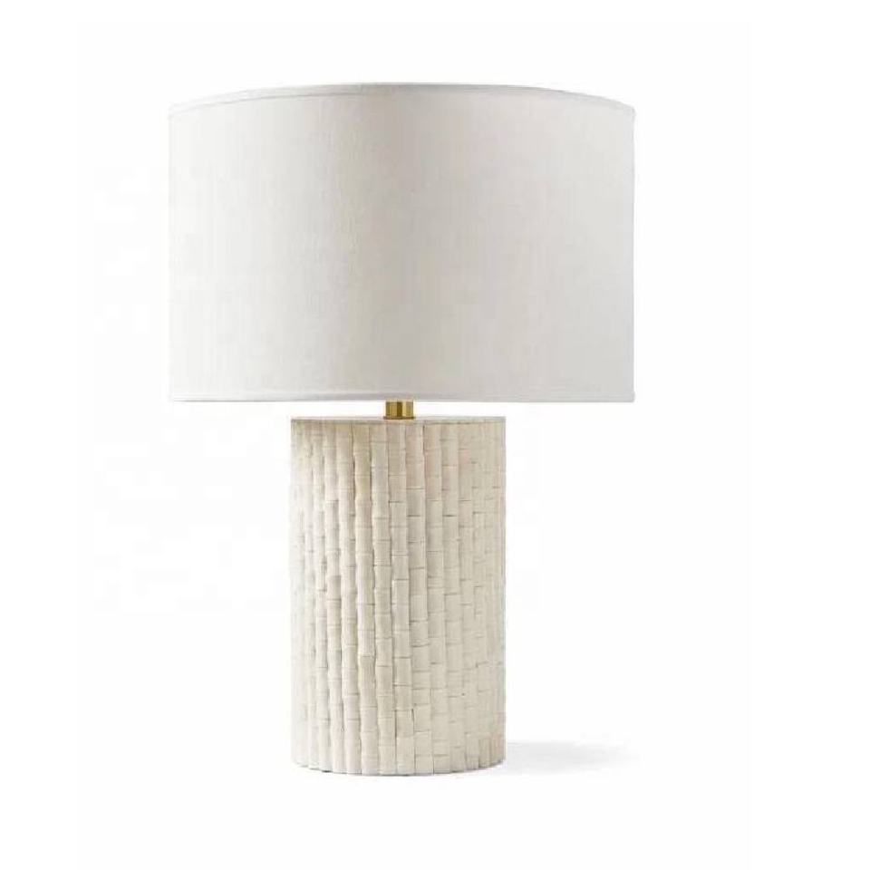 Haute Qualité Chevron Motif Bleu Blanc Résine Lampe De Table Électrique Os Incrustation Lampe Décorative pour Salon Décor