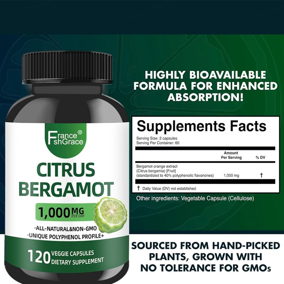 Extrait de plante de bergamote citronnée de haute qualité 1000mg 120 capsules Soutient le cœur et le système immunitaire pour adultes Complément de bergamote citronnée