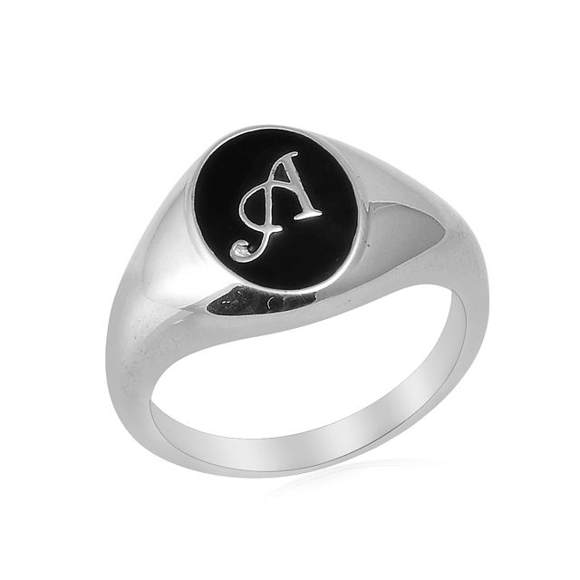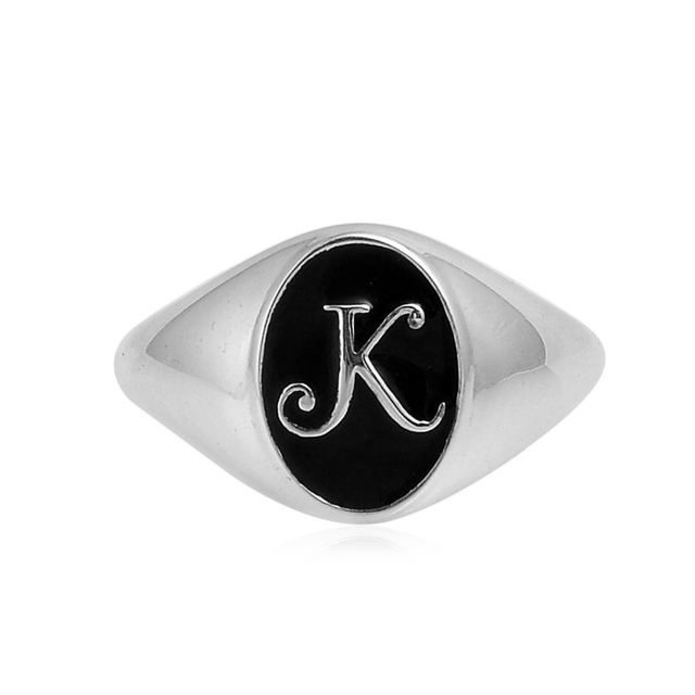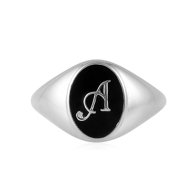 Bague classique de haute qualité en argent sterling 925 avec lettres alphabétiques, émail noir, sertie pavé, certifiée par un tiers, idéale pour les fêtes