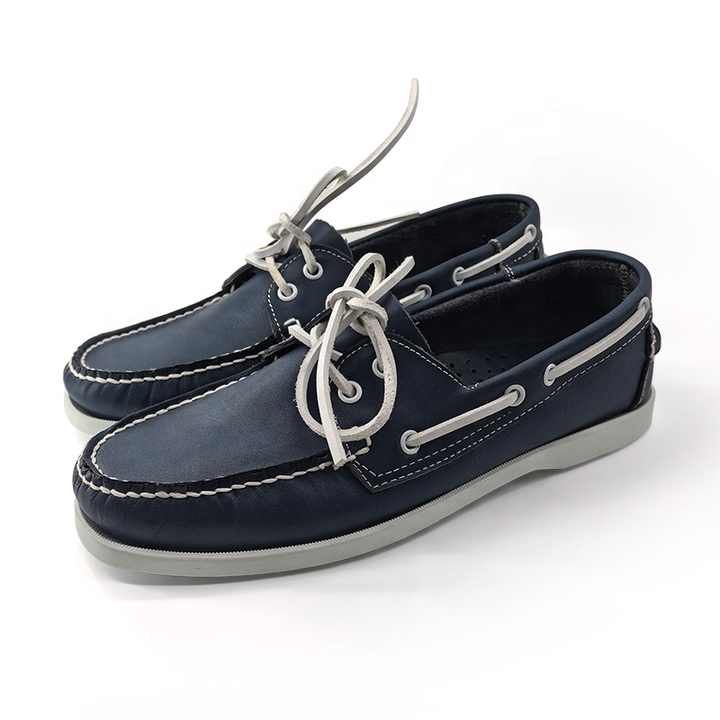 High Quality Classic Blue Real Genuine Leather Moccasin Casual Walking Barefoot Flat Loafer Chassure Homme Bateaux Men Boat Shoe