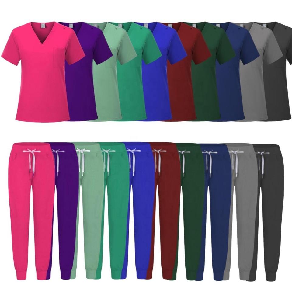 Haute qualité classique confortable uniformes médicaux gommage uniformes costumes haut et pantalon uniformes femmes Joggers Scrubs ensembles