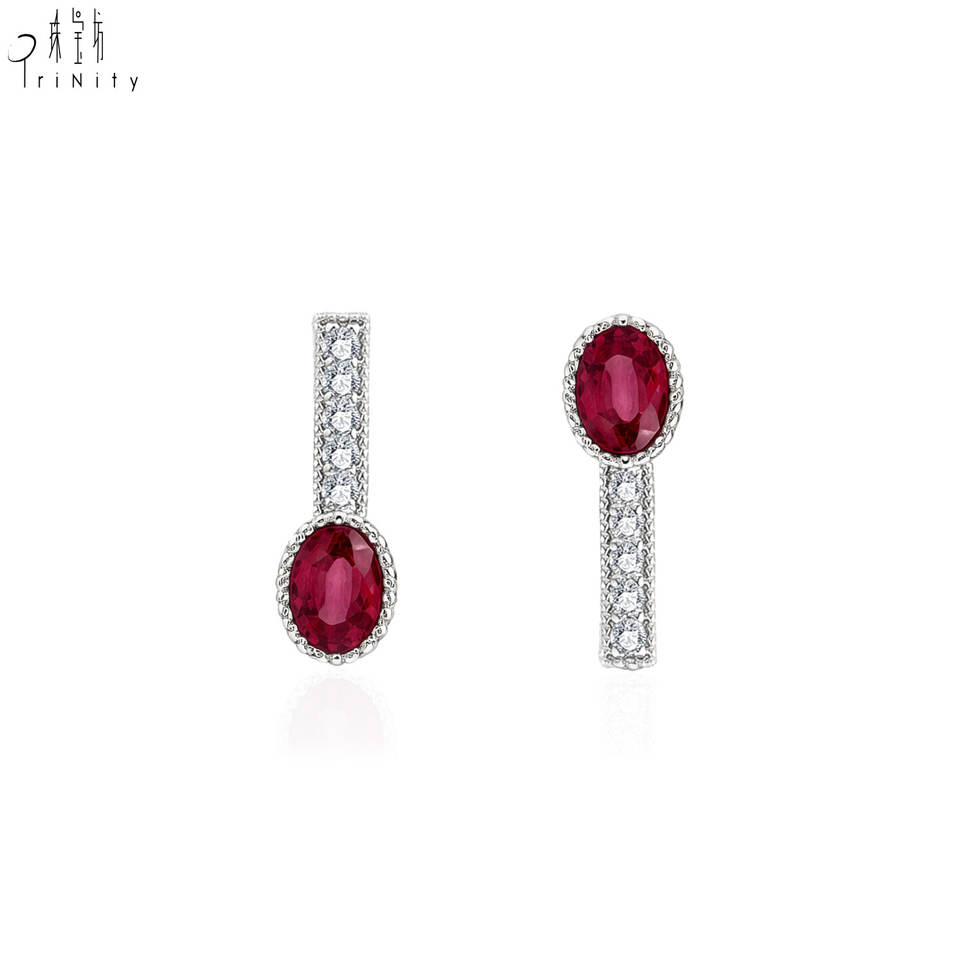 Bijoux fins de haute qualité au design classique, boucles d'oreilles en or blanc massif 18 carats avec rubis rouge vif naturel et diamants pour femmes.