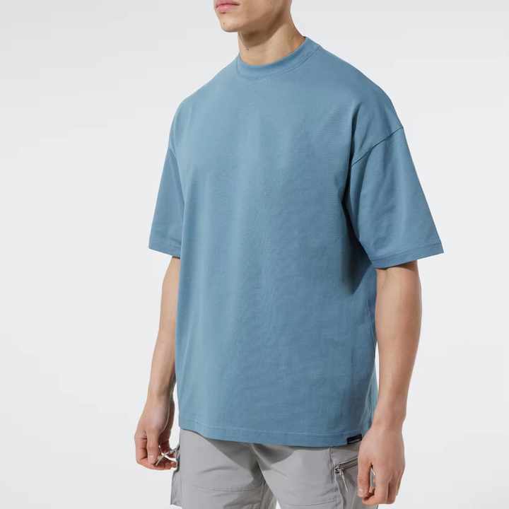 High Quality Classic Men's Regular Fit for Blue T-shirt Custom Summer Casual Boxy Shoulder Blank Short Sleeve 100% Cotton