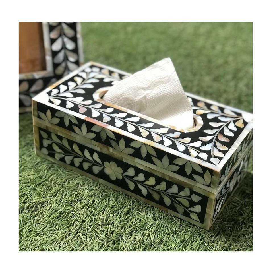 Boîte à mouchoirs rectangulaire classique de haute qualité en os incrusté, en bois et résine, pour la maison, l'hôtel et la restauration