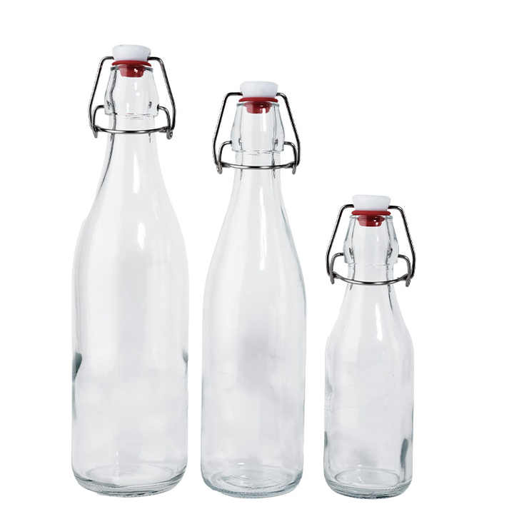 La bouteille à couvercle rabattable en verre transparent de haute qualité assure la fraîcheur hermétique de vos marchandises