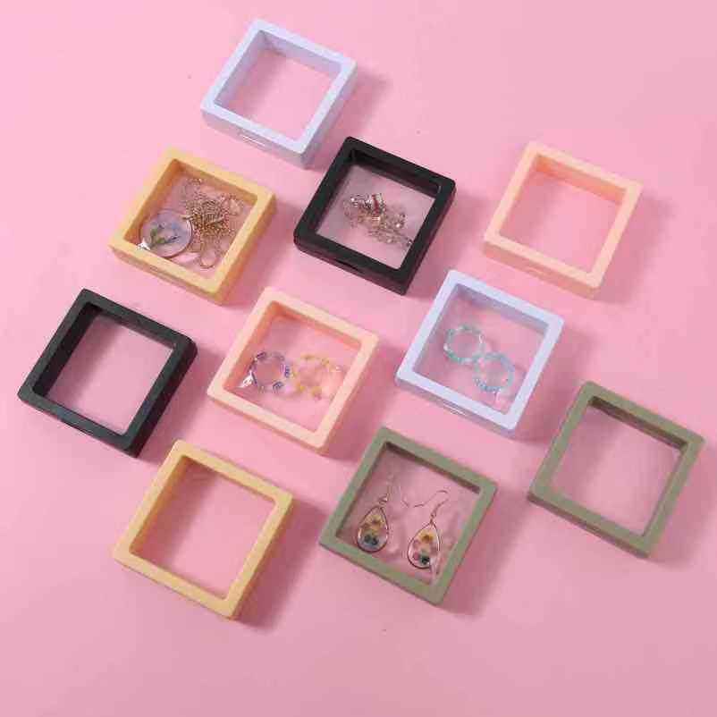 Boîte à bijoux en velours transparent de haute qualité avec film PE fait main, design carré transparent pour le rangement et la présentation de bijoux