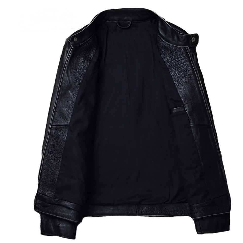 High Quality Coated Stand Collar Men's Autumn Genuine Leather Motorcycle Jacket Vintage Hooded Zipper Closure