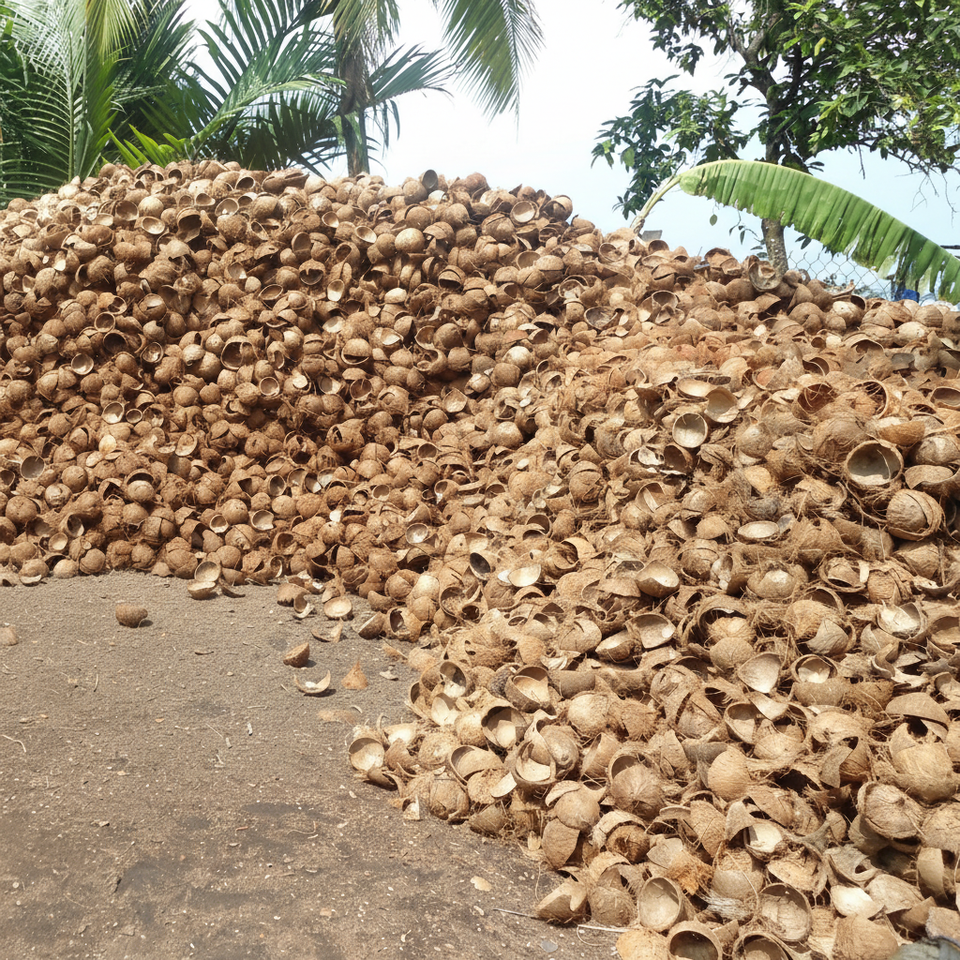 Coquille crue de noix de coco de haute qualité pour des projets de bricolage durables, améliorations de l'alimentation des animaux, articles verts pour la maison, conceptions artisanales modernes