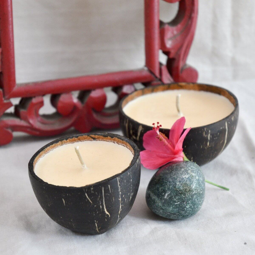 Bougie en coquille de noix de coco de haute qualité avec fleur séchée et cristal de luxe en coquille de noix de coco