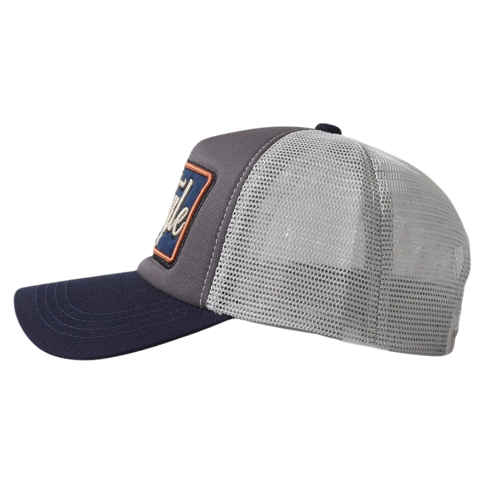 Casquette de baseball trucker en maille color-block de haute qualité avec patch brodé, visière incurvée, ajustable, 5 panneaux, pour chauffeur de camion