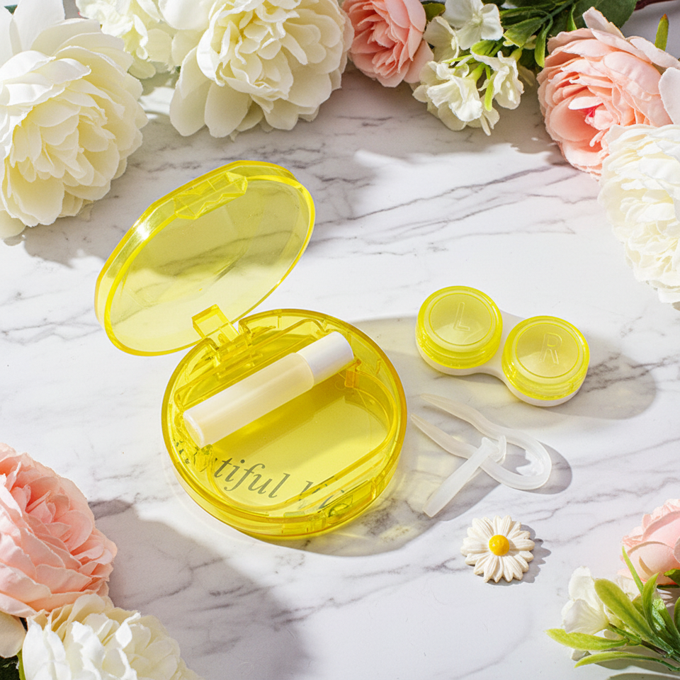 Boîtes de lentilles de contact colorées de haute qualité, lentilles de contact rondes tendance, boîtes de lentilles de contact bon marché, emballages de lentilles de contact