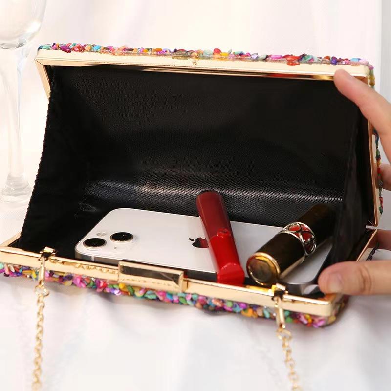 Robe colorée de haute qualité sacs de soirée dames mode strass et incrustation de coquillages embrayages à chaîne carrée
