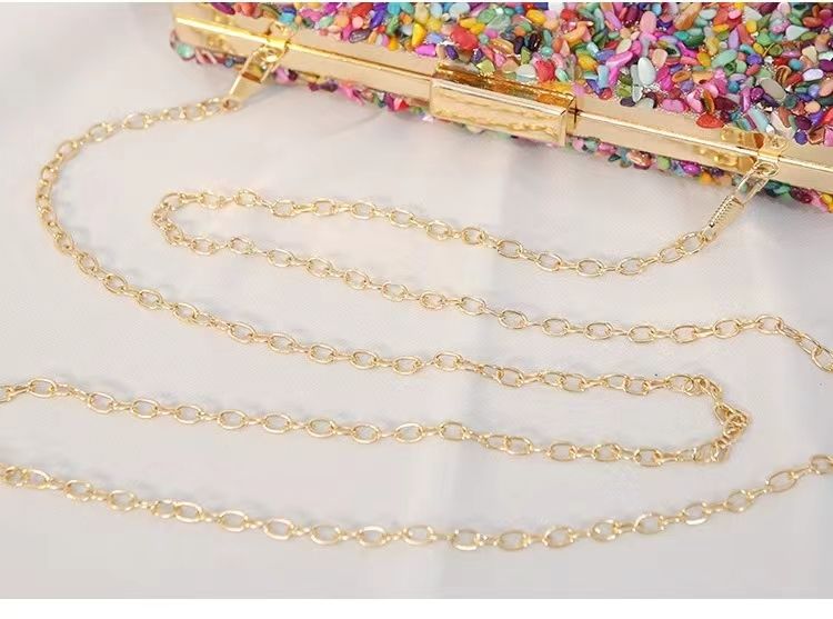 High Quality Colorful Dress Evening Bags Ladies Fashion Rhinestone and Shell Inlay Square Chain Clutches