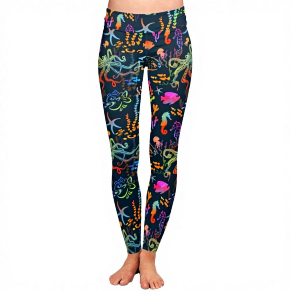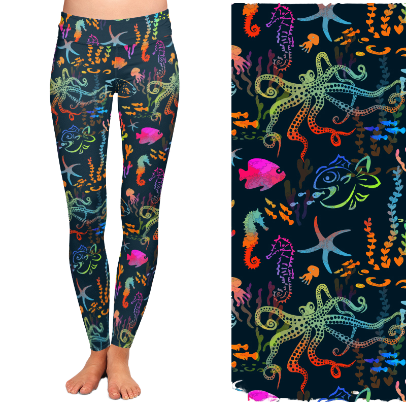 Legging de yoga taille haute pour femme, imprimé poissons colorés, doux comme du beurre, respirant, double brossé, sans coutures, 92% polyester 8% élasthanne