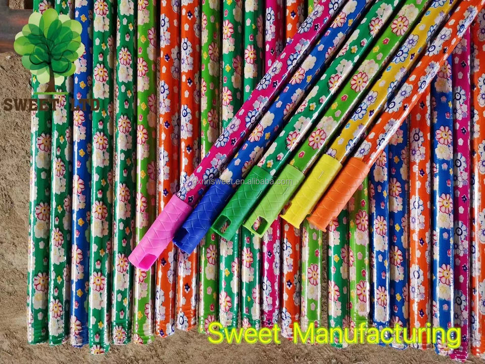 Manche de balai en bois avec fil italien, couverture en PVC à fleurs colorées de haute qualité