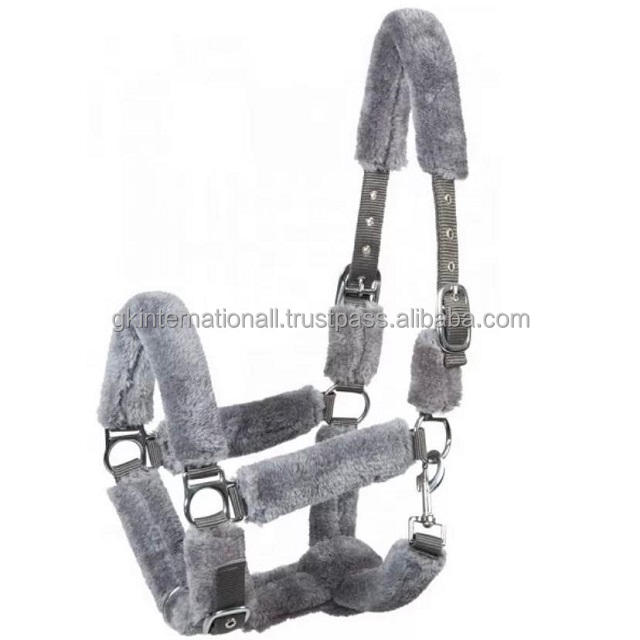 Licol cheval en Nylon coloré de haute qualité, avec fourrure douce rembourrée, en vison, vente en gros, raccords SS