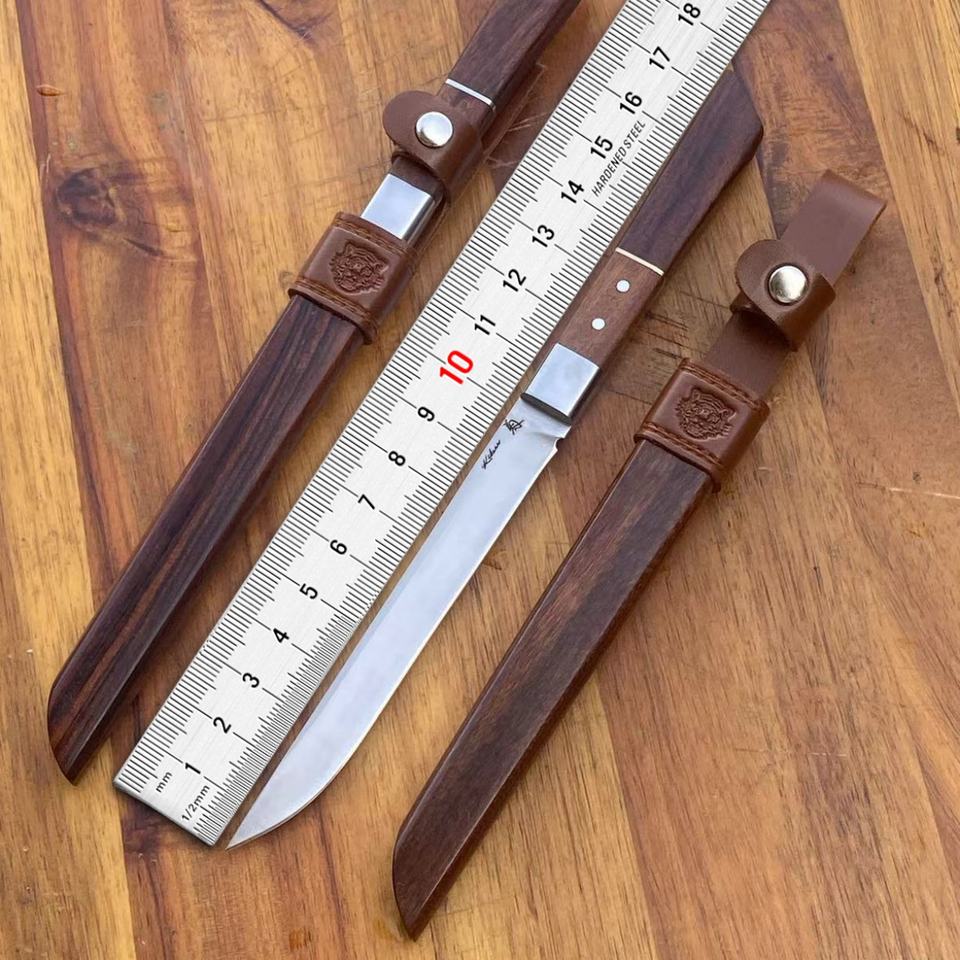 Couteau de combat de haute qualité, couteau de poche personnalisable, lame en acier inoxydable, fourreau en bois OEM, usage industriel, extérieur, bricolage, 1 an