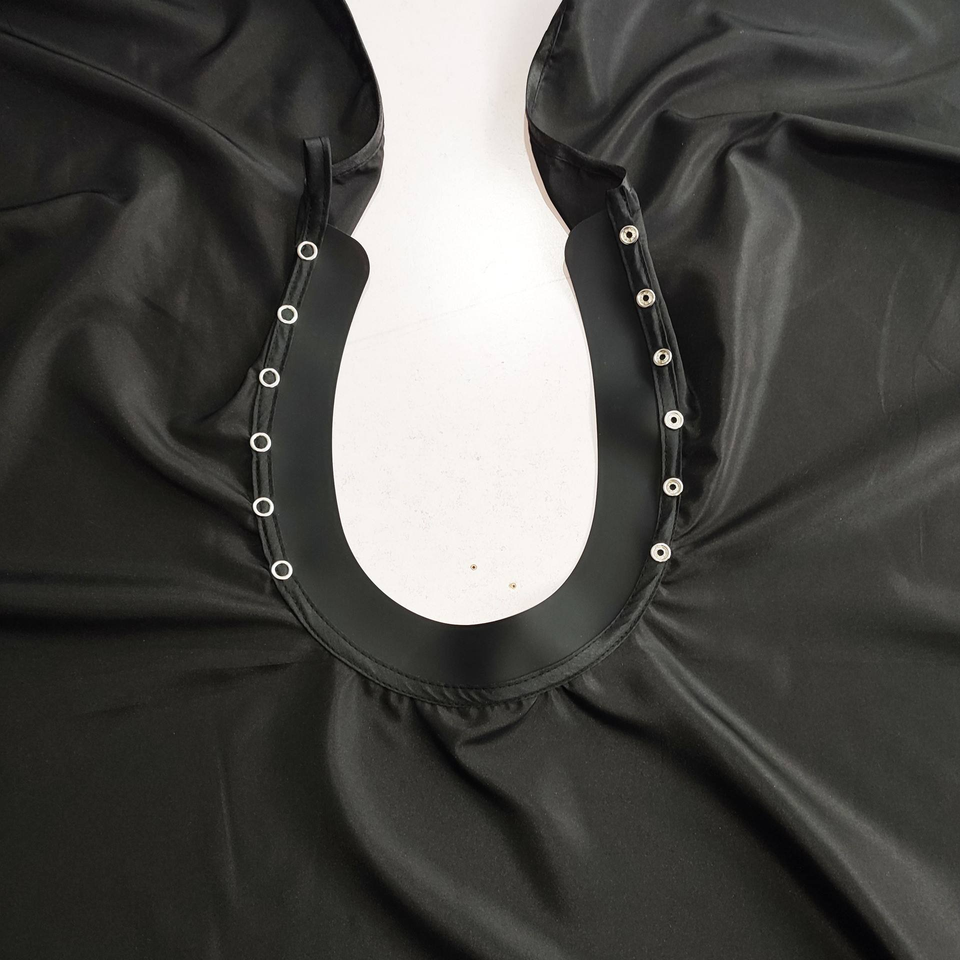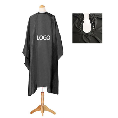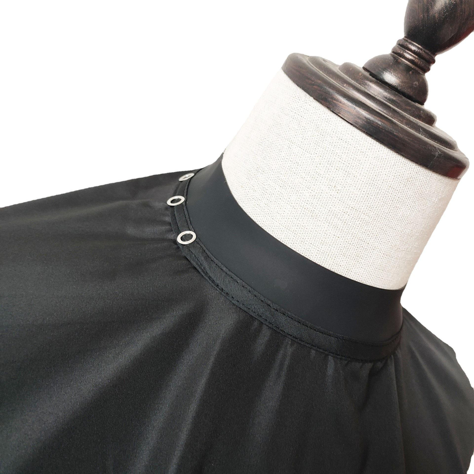 Cape de Salon Personnalisable Entièrement Noire de Haute Qualité et Confortable, Tablier de Coiffure Imperméable en Polyester avec Boutons-Pression en Silicone pour le Cou, pour Barbiers
