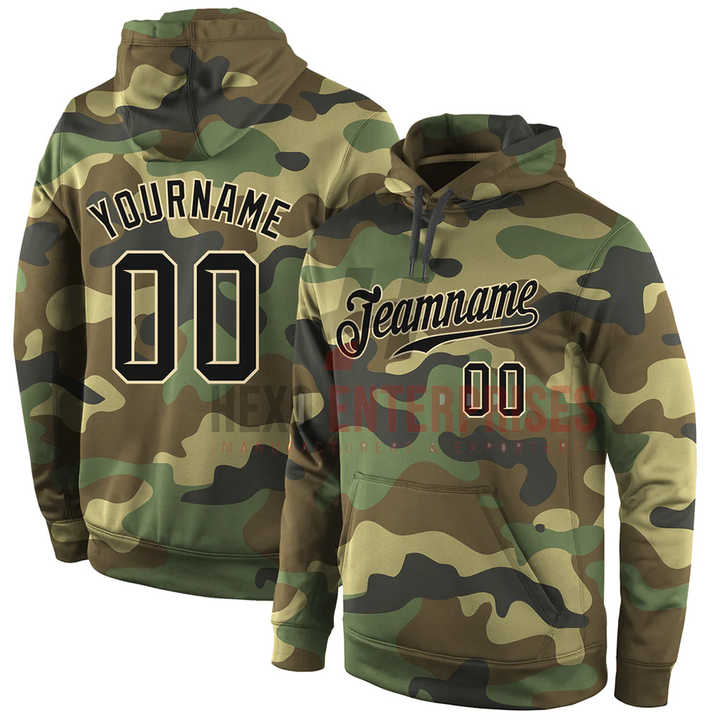 Haute qualité confortable bonne qualité personnalisé cousu camouflage noir-crème sport pull sweat au service à capuche
