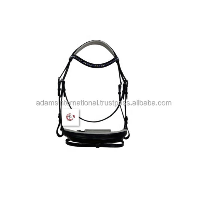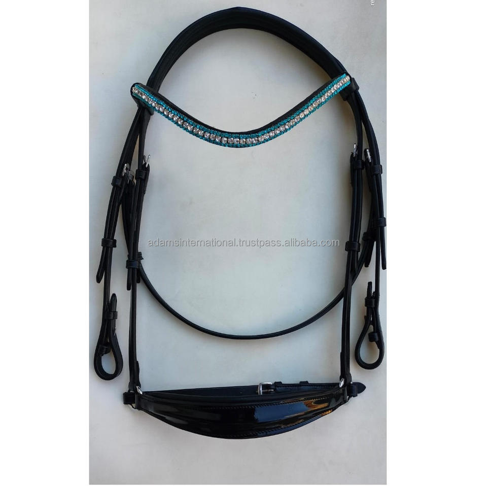 Bride de course de chevaux en cuir rembourré souple confortable de haute qualité avec cristaux de muserolle produits de cheval décorés