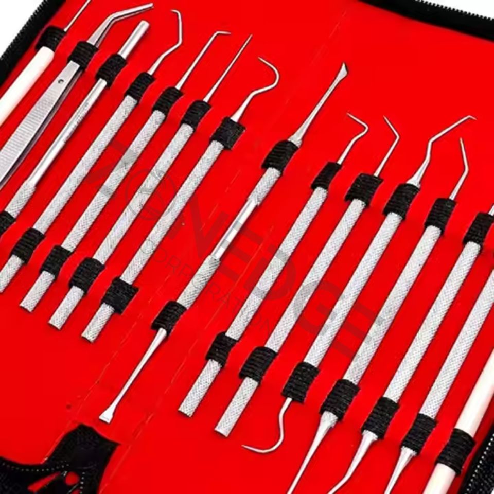 Ensemble complet d'outils dentaires en acier inoxydable de haute qualité Instruments de laboratoire manuels pour les kits dentaires de nettoyage