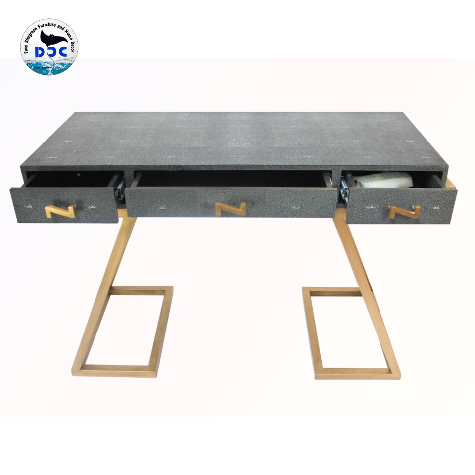 Tables console de haute qualité bureau de luxe en faux galuchat avec trois tiroirs forme rectangle de luxe moderne pour salon