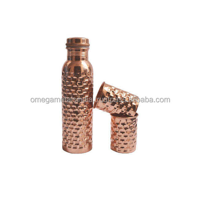 Bouteille d'eau en cuivre de haute qualité à boire avec fini de haute qualité avec ensemble de verre pour un usage domestique quotidien