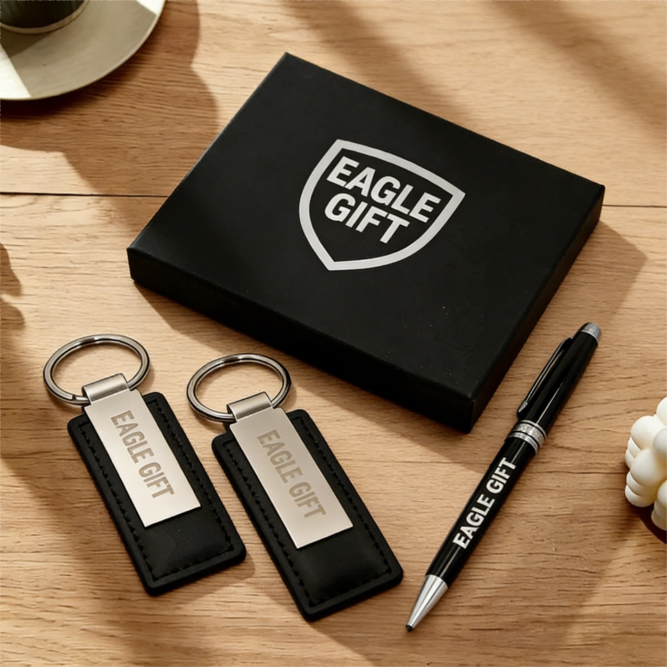 Porte-clés stylo en acier inoxydable de haute qualité, logo personnalisé, ensemble cadeau pour événements et salons professionnels