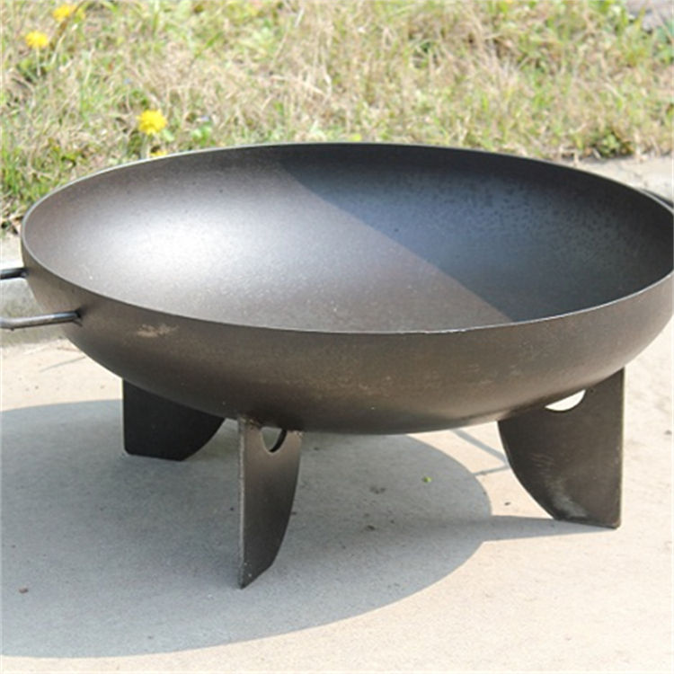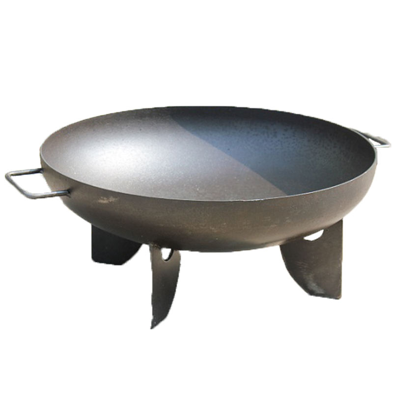 Bol de feu de camp en acier corten de haute qualité avec pieds de trépied, parfait pour la terrasse et le camping.