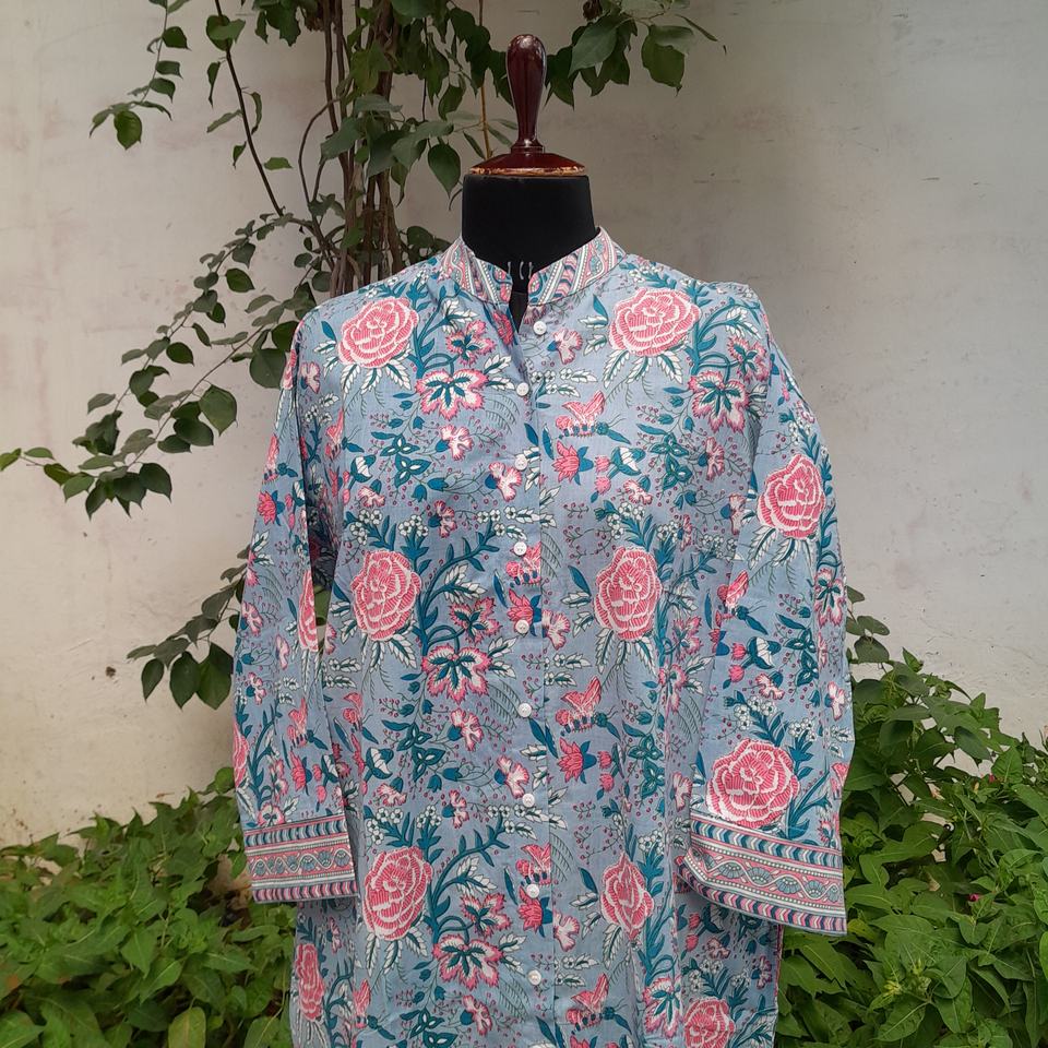 Product Name:Wholesale Hand Block Printed Cotton Fabric Shirt Style Dress