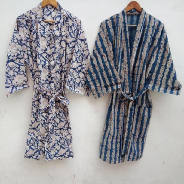Nom:Kimono en coton imprimé au bloc avec ceinture