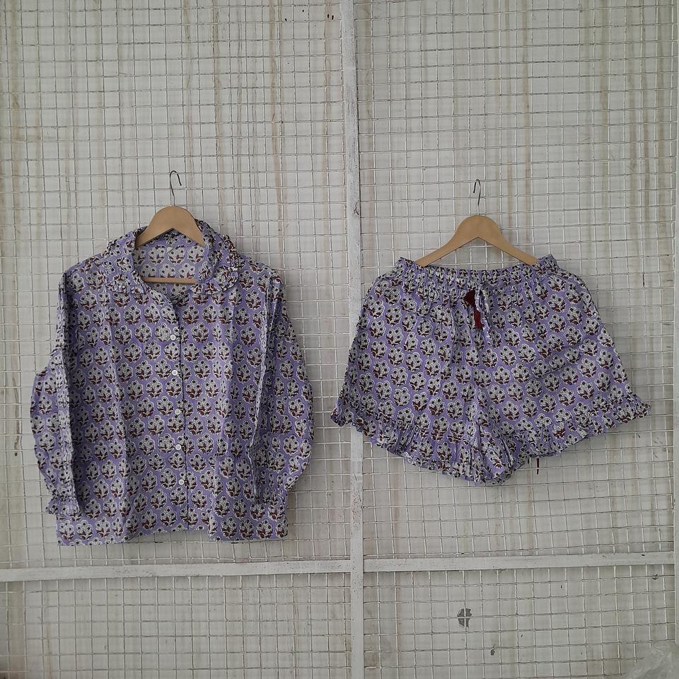 Product Name:Elegant Cotton Block Print Fabric Frill Pajama
