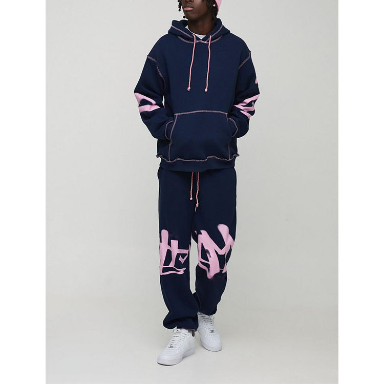 Ensemble de survêtement vintage d'hiver de haute qualité en molleton 100 % coton imprimé, coupe oversize, avec capuche et poche kangourou, pour homme, motif graffiti