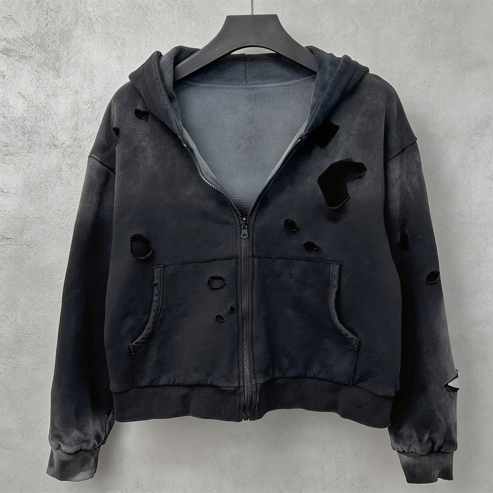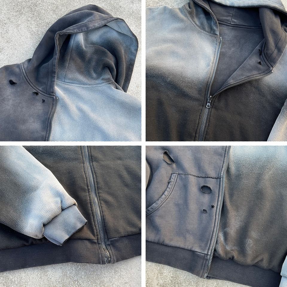 Hoodies en coton de haute qualité, coupe courte, effet usé, 500 g/m², épais, gaufré, réversible, personnalisé, surdimensionné, zippé, délavé