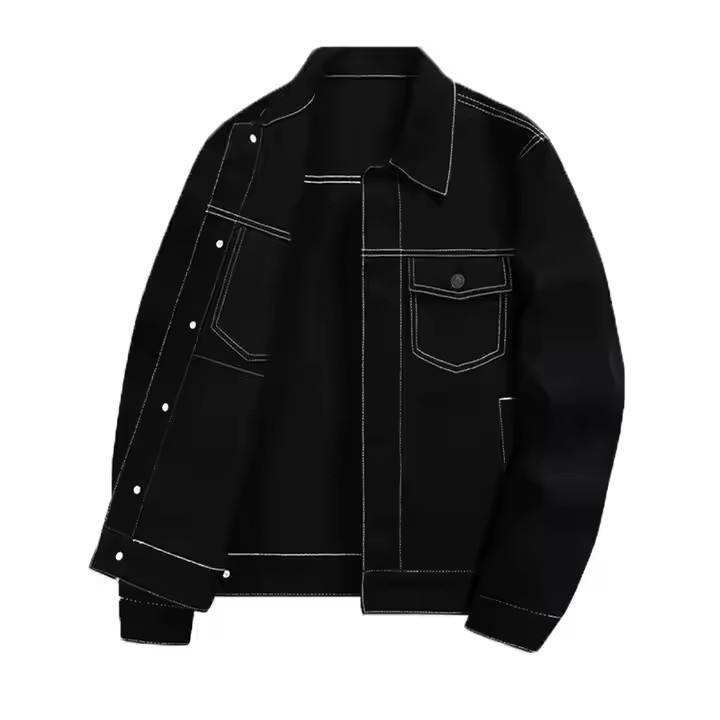 Veste en denim de coton de haute qualité, lavée, noire, veste à manches longues pour homme, sur mesure, taille plus, jeans, manteaux et vestes en denim pour homme