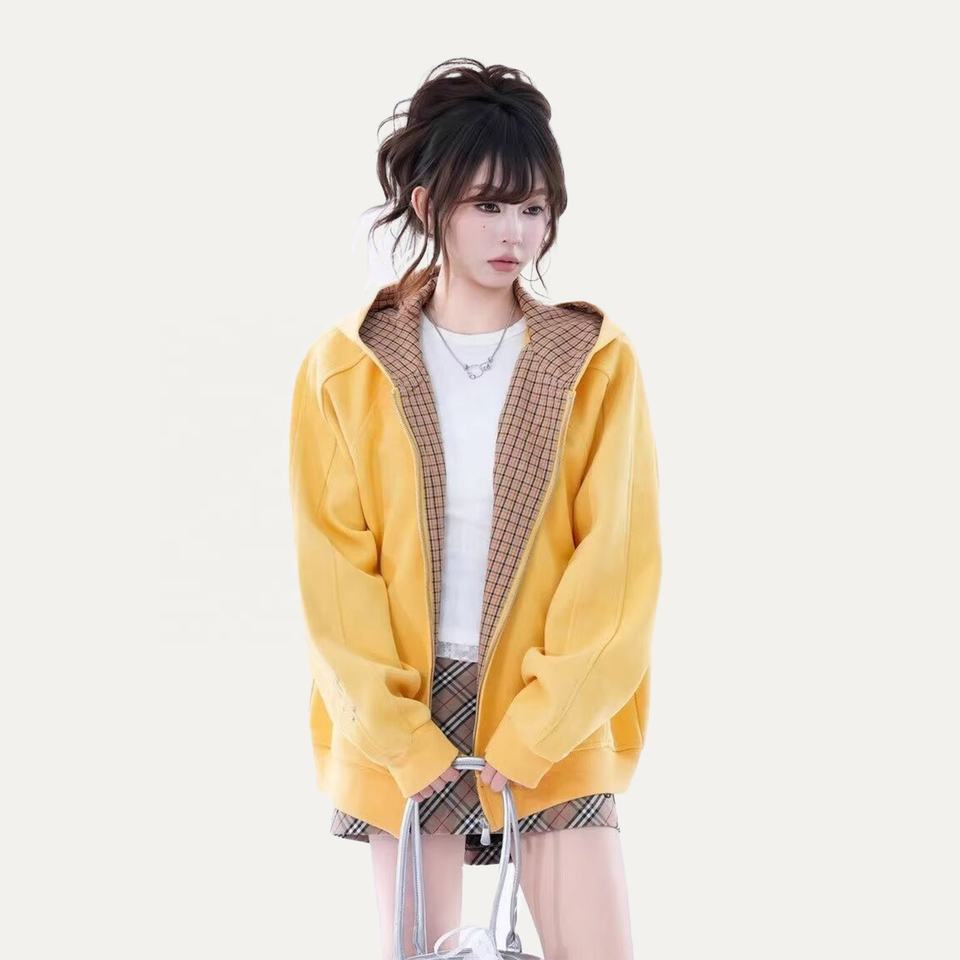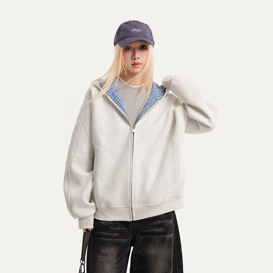 Product Name:Cotton-Poly Blend Plaid-Lined Hoodie