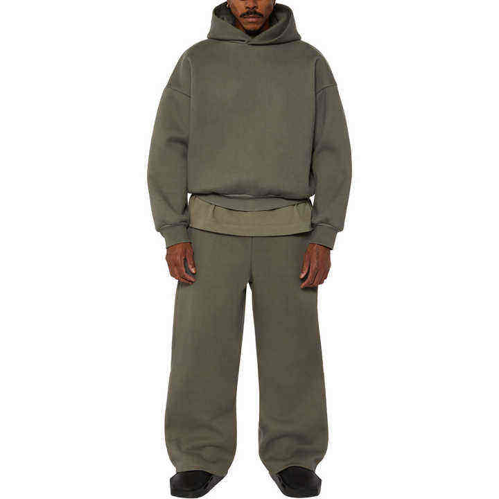 Ensembles de survêtements d'hiver en coton de haute qualité, imprimés, coupe oversize, avec logo personnalisé, en molleton épais, comprenant un sweat à capuche et un pantalon de survêtement