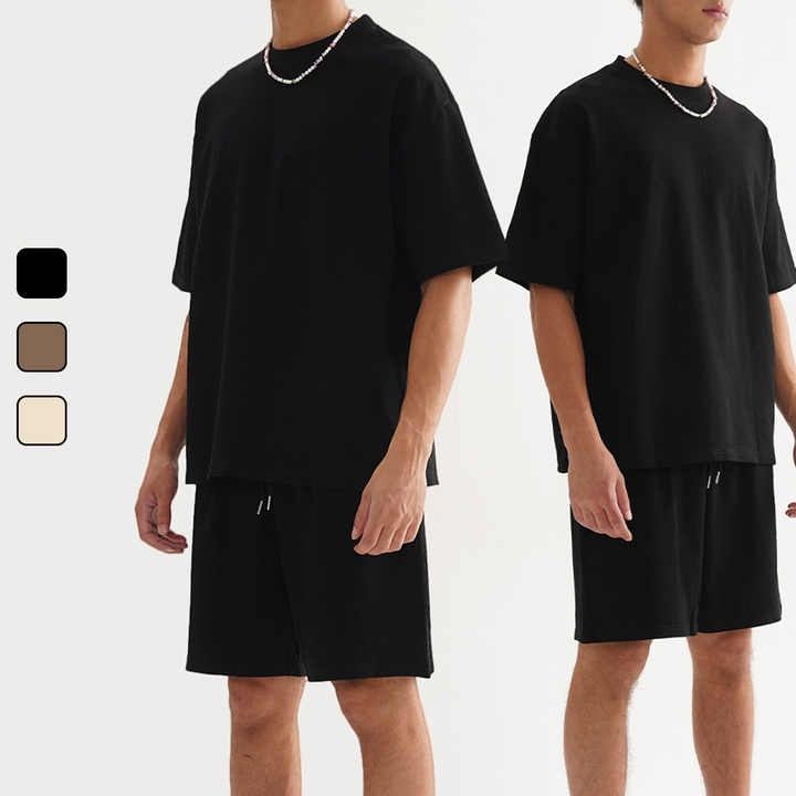 Ensemble de t-shirts pour hommes en coton deux pièces de haute qualité marque à la mode Style décontracté pour l'été jeunesse Sport tissu tricoté solide