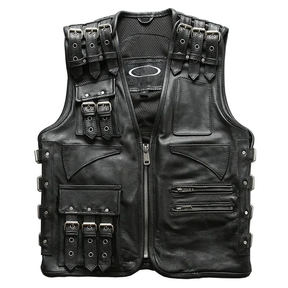 Gilet de cavalier élégant en cuir de vachette réglable en peau de vache de haute qualité pour hommes
