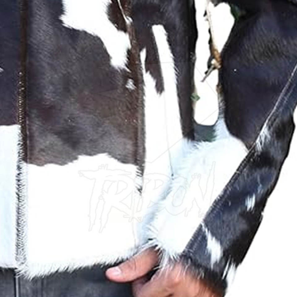 Veste en cuir de vache de haute qualité avec manches longues Design personnalisable 'Hair On' Logo avant au meilleur prix