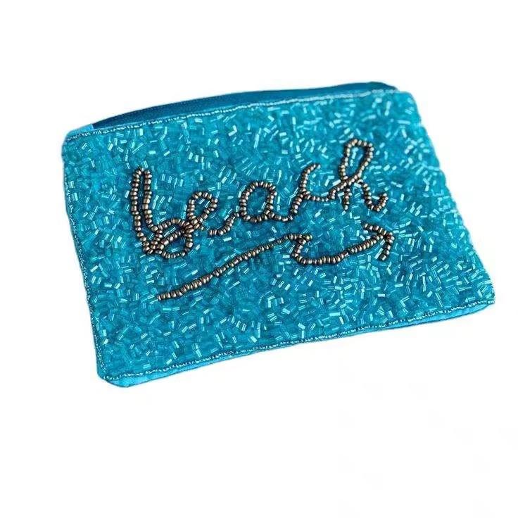 Pochette perlée artisanale CRYSTAL CRAFT de haute qualité, motif cowboy, couleurs bleu, orange, blanc, mini porte-monnaie brodé avec fermeture éclair, fait main