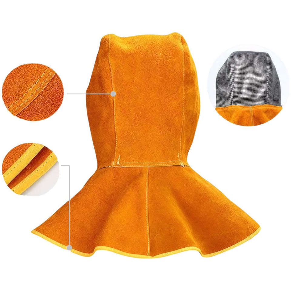 Capot de soudage en cuir de vachette de haute qualité ignifuge 200C résistance à la chaleur respirateur antistatique résistant aux radiations