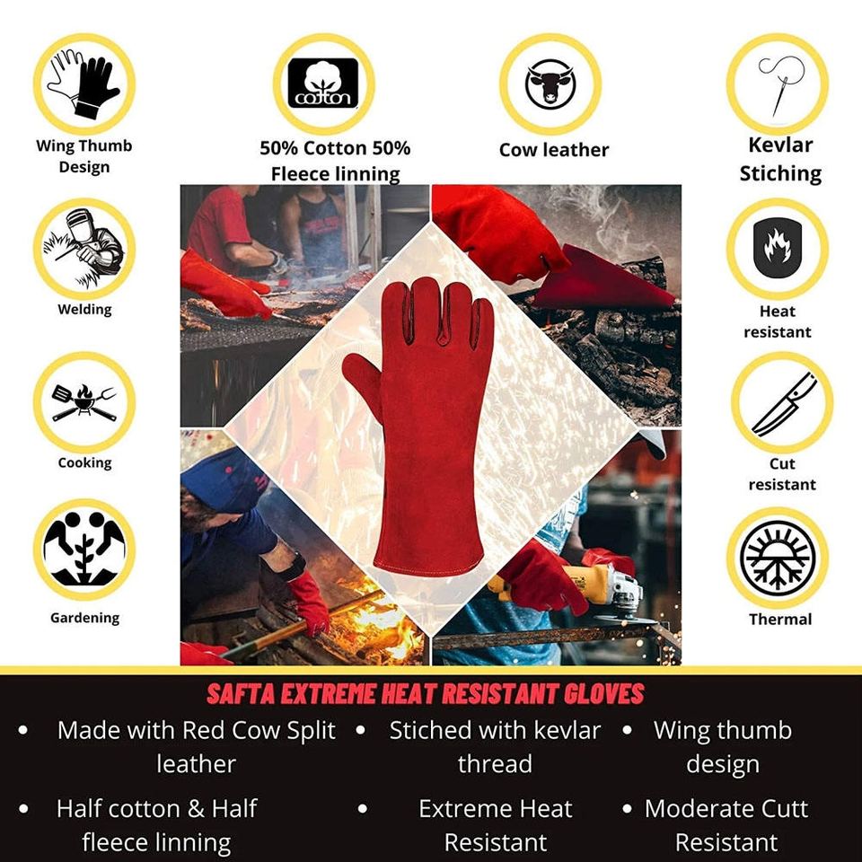 Gants de soudage en cuir de vachette de haute qualité, résistants à la chaleur et aux étincelles, pour travaux lourds, lutte contre les incendies, construction, soudeurs