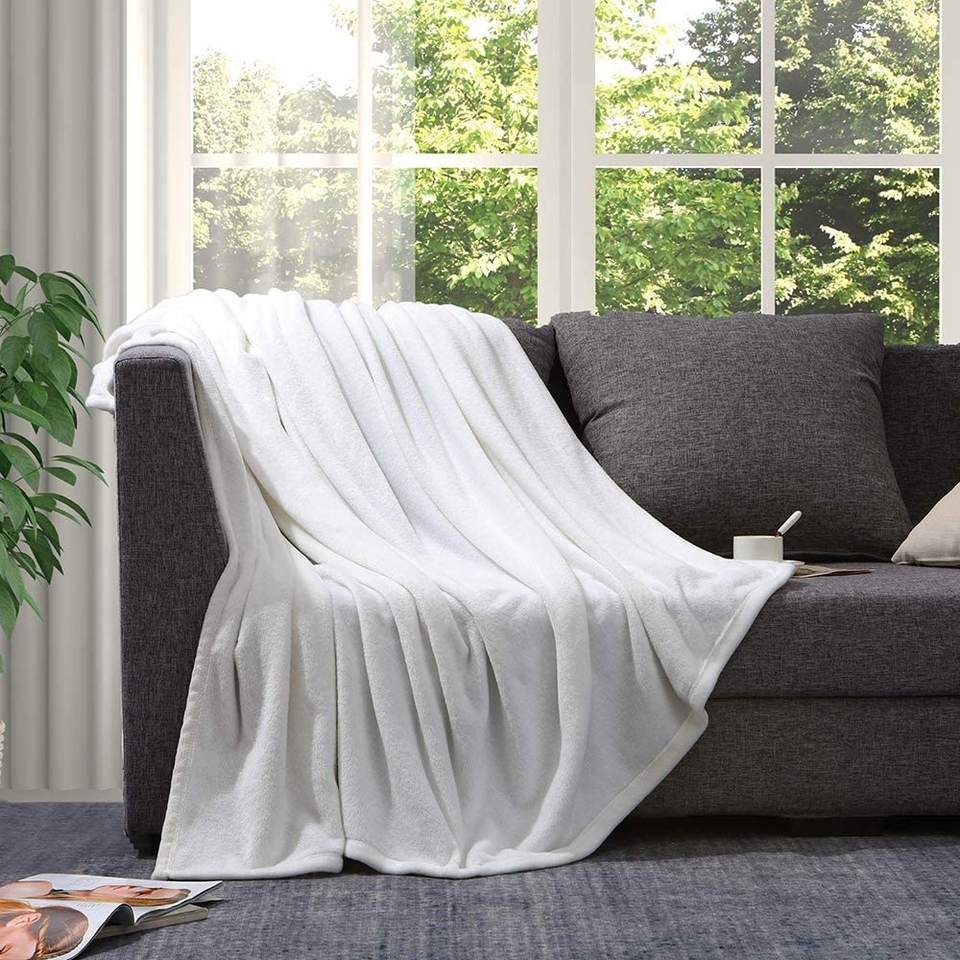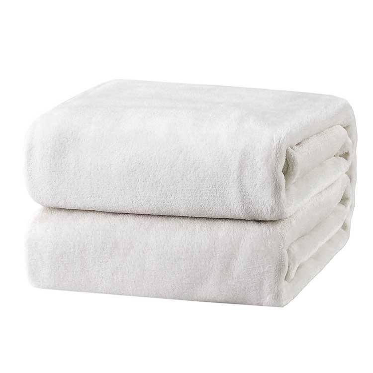 Couverture en flanelle polaire blanche tricotée unie personnalisée de haute qualité, douce et confortable, avec motif imprimé pour toutes les saisons