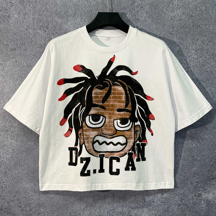 T-shirt à col rond de haute qualité, fabricant de vêtements de rue, t-shirt surdimensionné lourd avec strass, t-shirt en coton, t-shirt ample et court