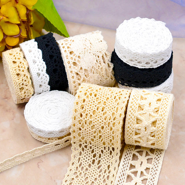 Ruban en dentelle crochetée en coton beige/blanc/noir de haute qualité pour vêtements de bébé et d'enfant