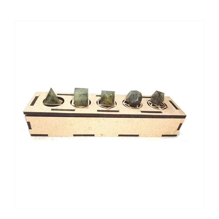 Ensemble de géométrie en cristal de haute qualité Labradorite cristal géométrie coffret en bois solides platoniques ensemble de géométrie en pierre naturelle sacrée