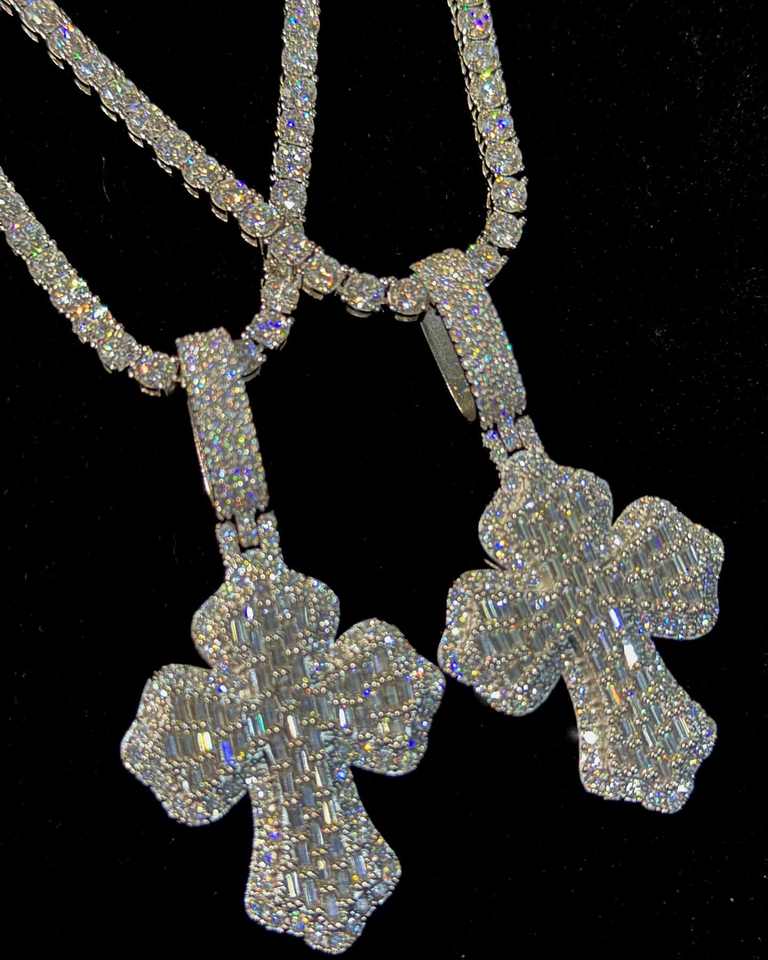 Pendentif croix en moissanite taille princesse plaqué or 14 carats de haute qualité, style hip-hop, en argent 925
